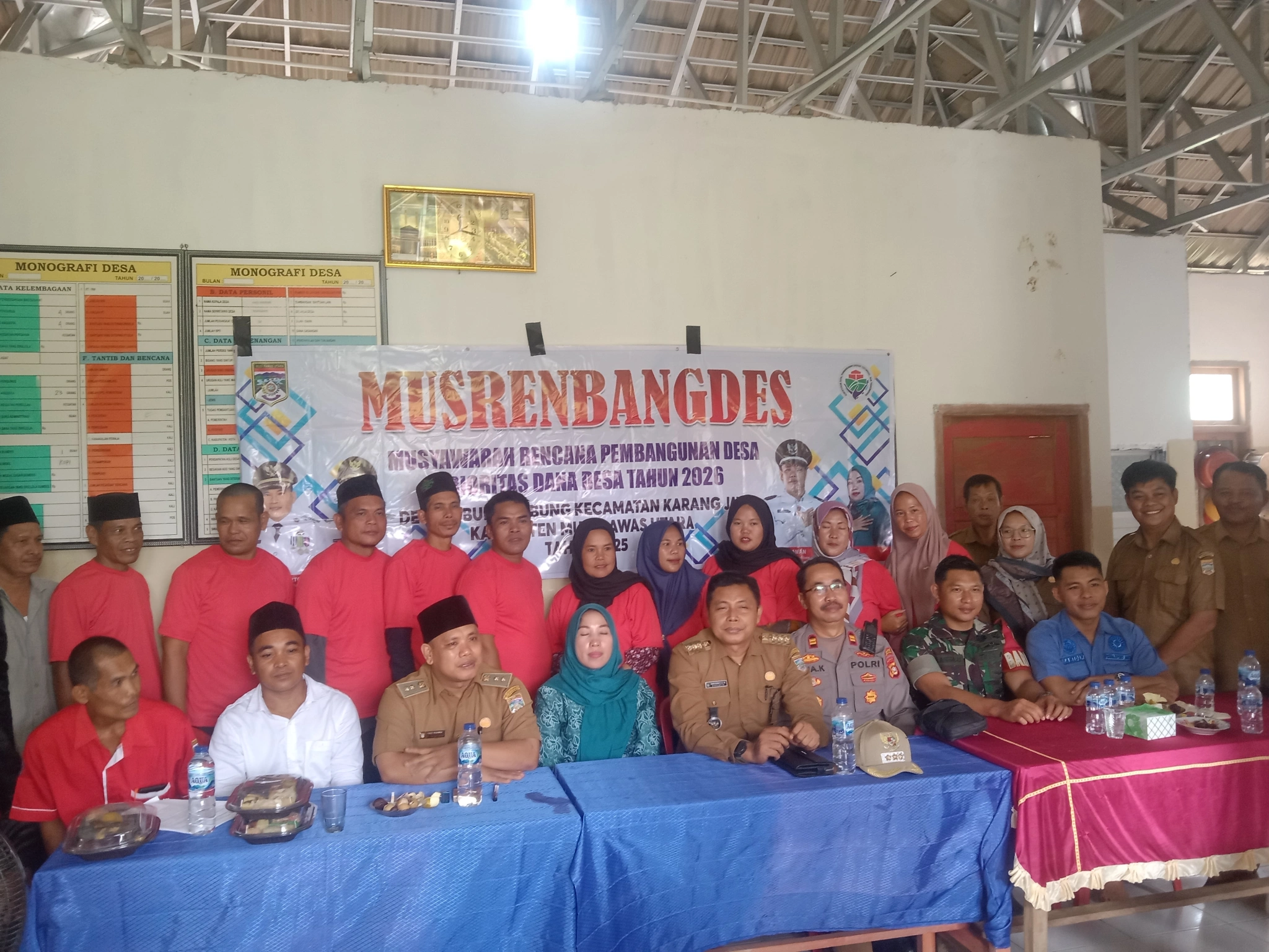 Kegiatan Musrenbang Desa dalam rangka penetapan skala prioritas RKP Desa Tahun 2026, yang dihadiri oleh Pemerintah Desa Camat Kapolsek, BPD Ketua perwakilan kelompok Tani, Disbilitas, Pendamping Desa, Babinsa, dan unsur perwakilan perempuan.