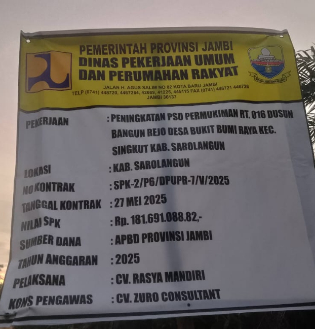 “Dengan adanya kejadian ini pihak Dinas PPK, PPTK konsultan dan pengawas harus menindak dengan tegas, Oknum CV atau pelaksana yang bermain main dengan anggaran negara, melalui APBD kabupaten provinsi Jambi